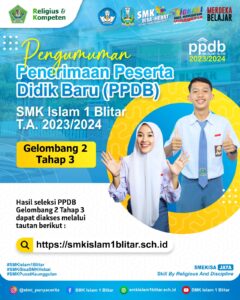 Pengumuman PPDB SMK Islam 1 Blitar Gelombang 1 Tahap 3